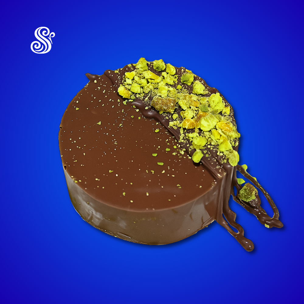 The VIRAL Dubai chocolate discs filled with Kunafa and creamy pistachio Sauce.
