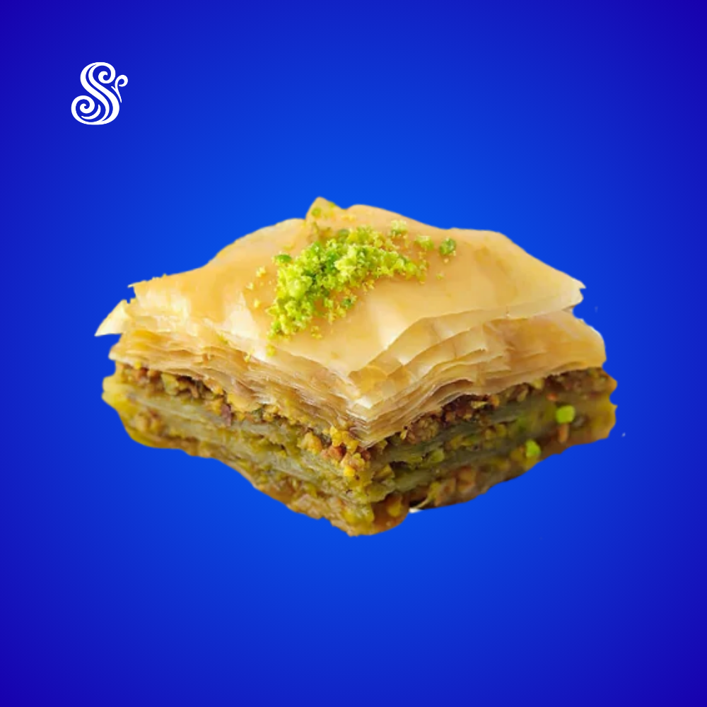 Crispy phyllo layers, crushed pistachios, and sweet syrup—our baklava delivers rich, authentic flavor.